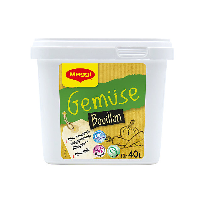 Nutzen Sie die Maggi Gemüsebouillon zum Würzen/Abschmecken von gebundenen und ungebundenen Gemüse-, Pilz-, Reis-, Pasta-, Fisch-, Fleischgerichten. Ebenso geeignet als Basis für eine feine klare Suppe, Eintöpfe und helle Saucen.